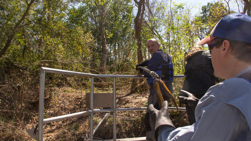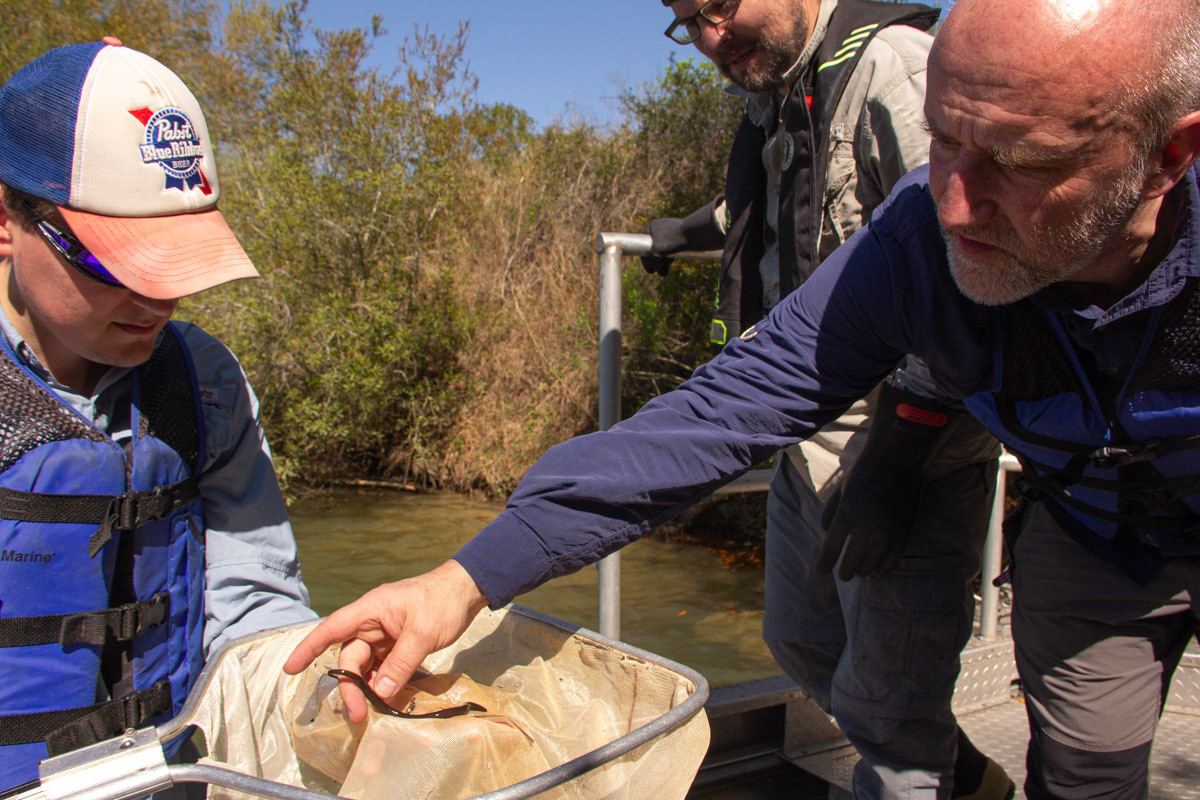 Field work in Fort Bend Co., Texas resulted in the first record of the non-native Gangetic Swamp Eel in Texas; we collected adults and juveniles, indicating the species is now capable of reproducing here. Click button below for our paper: